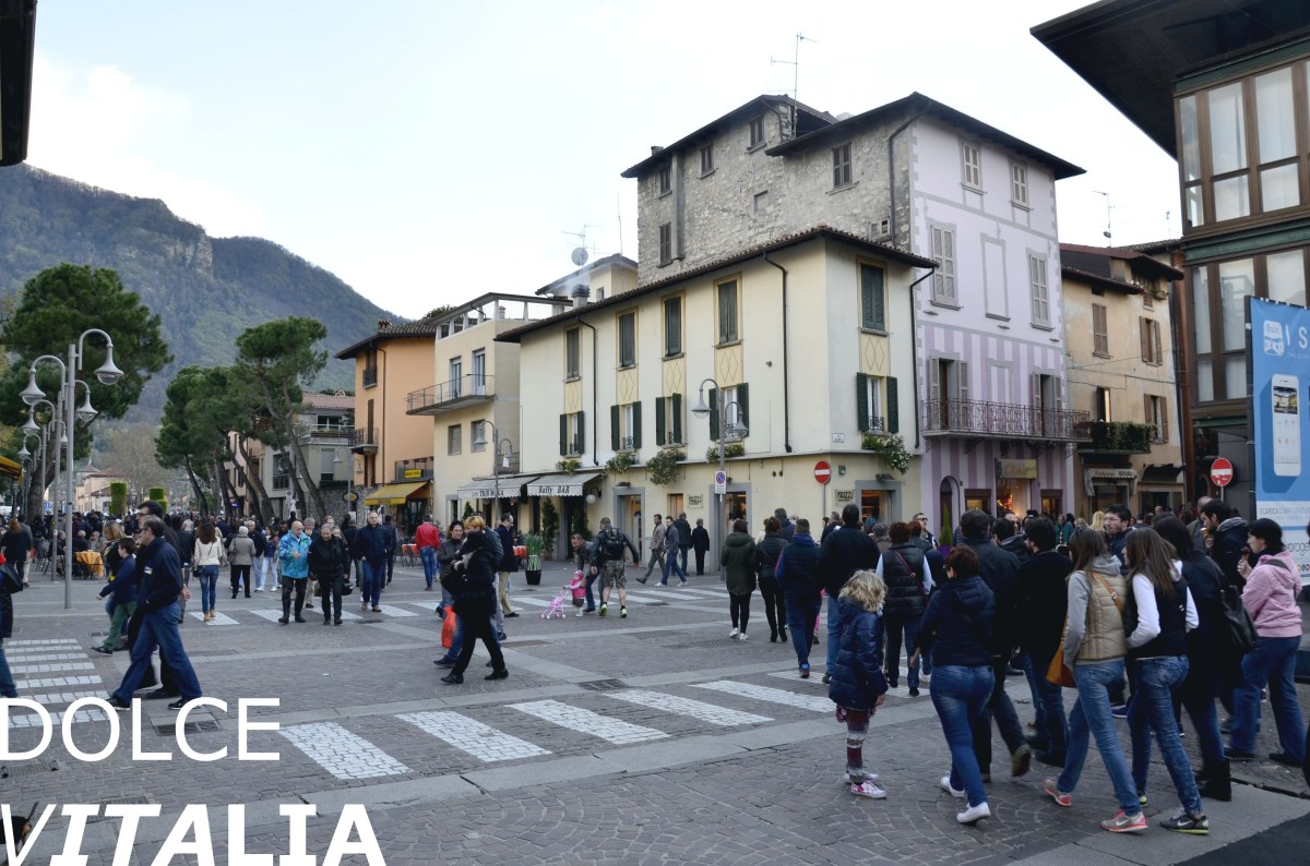 So many streets in one point. Viale Repubblica, Via Campo, Via Dante Alighieri, Iseo and many people having fun.