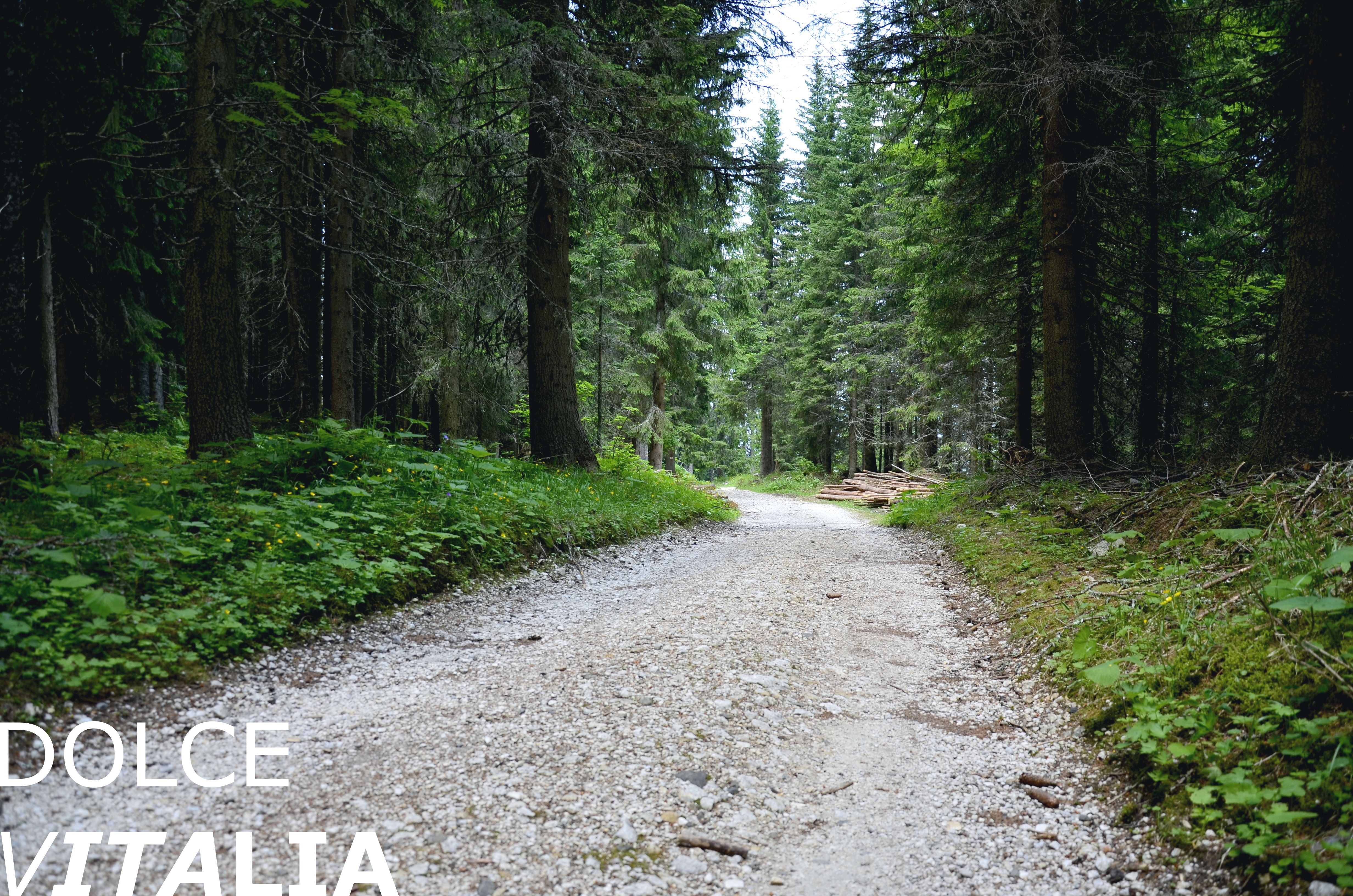 Walking up to Latemar through deep alpine forest.