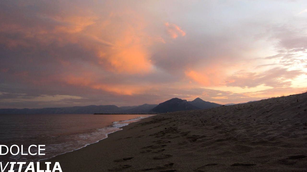 Finally, Marina di Orosei beach with a clean sky but with a fire in the distance