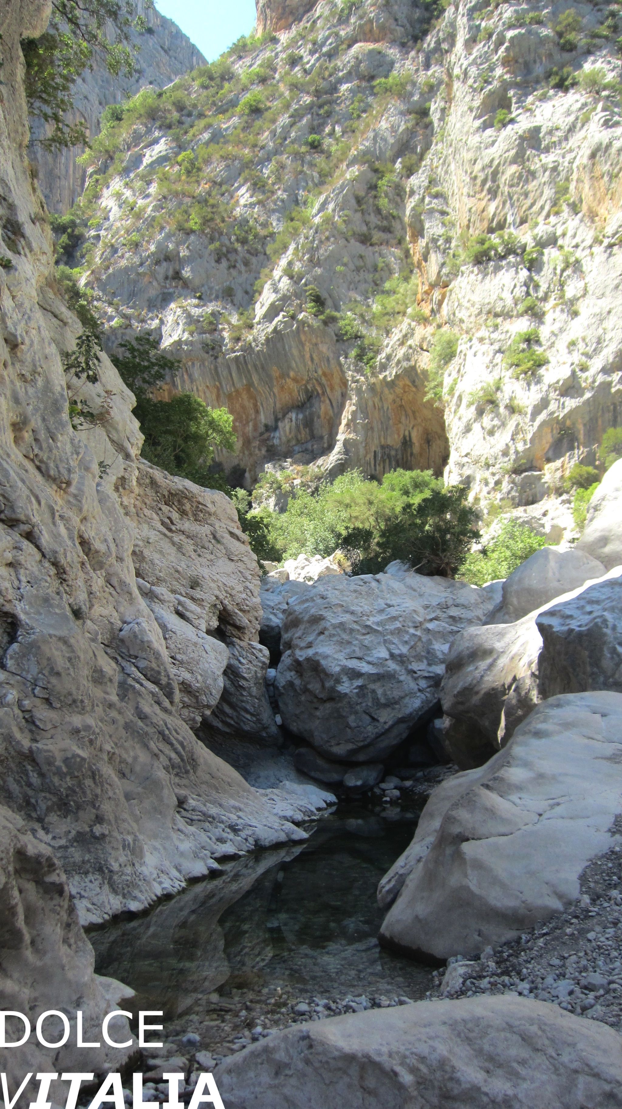 Gorropu canyon entrance with cold water pouring around